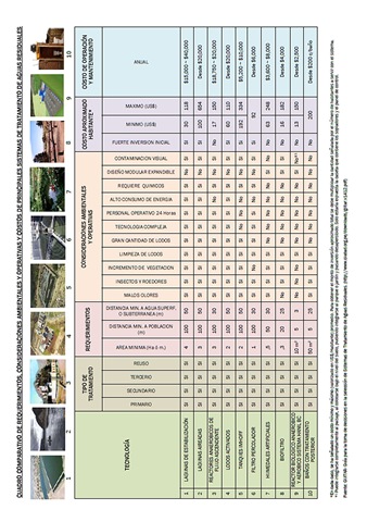 Cuadro comparativo de requerimientos, consideraciones ambientales, operativas y costos de principales sistemas de tratamiento de aguas servidas (TAS)