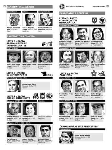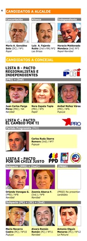P 6-7 / Relación de candidatos a Alcalde y Concejal de la Comuna de Navidad. Ordenados por lista, sub pacto y partido . Espacio informativo gratuito dedicado a las Elecciones Municipales 2012