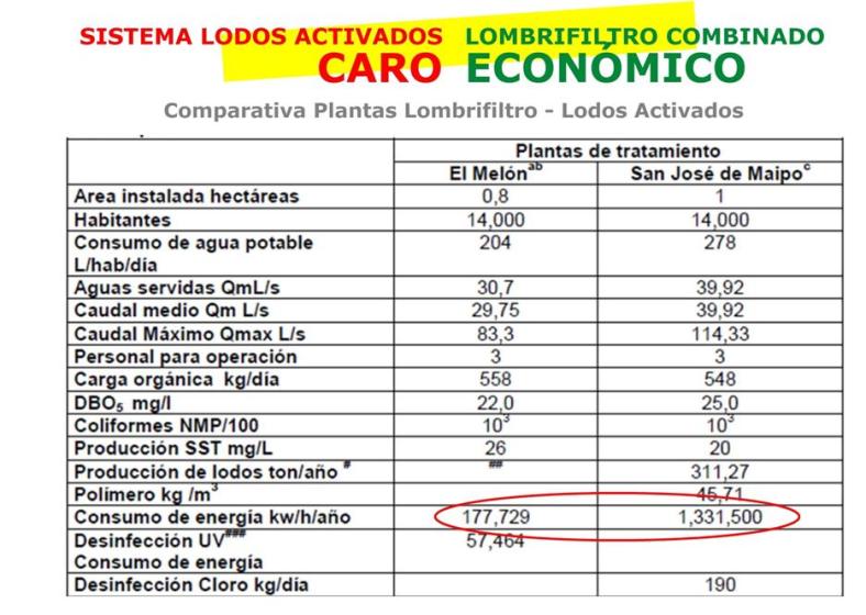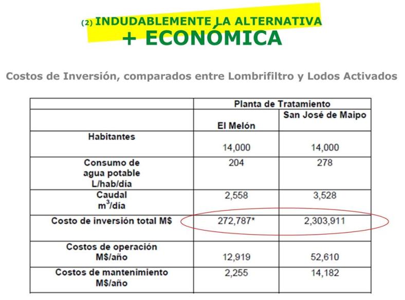 Ambas plantas se construyeron a fines de la década del 90 por lo que debemos considerar que ambos sistemas actualmente si bien son mas eficientes en su relación de costo mantienen la misma proporción de costos y consumos, representando Lombrifiltro la alternativa más económica (1/7 parte)