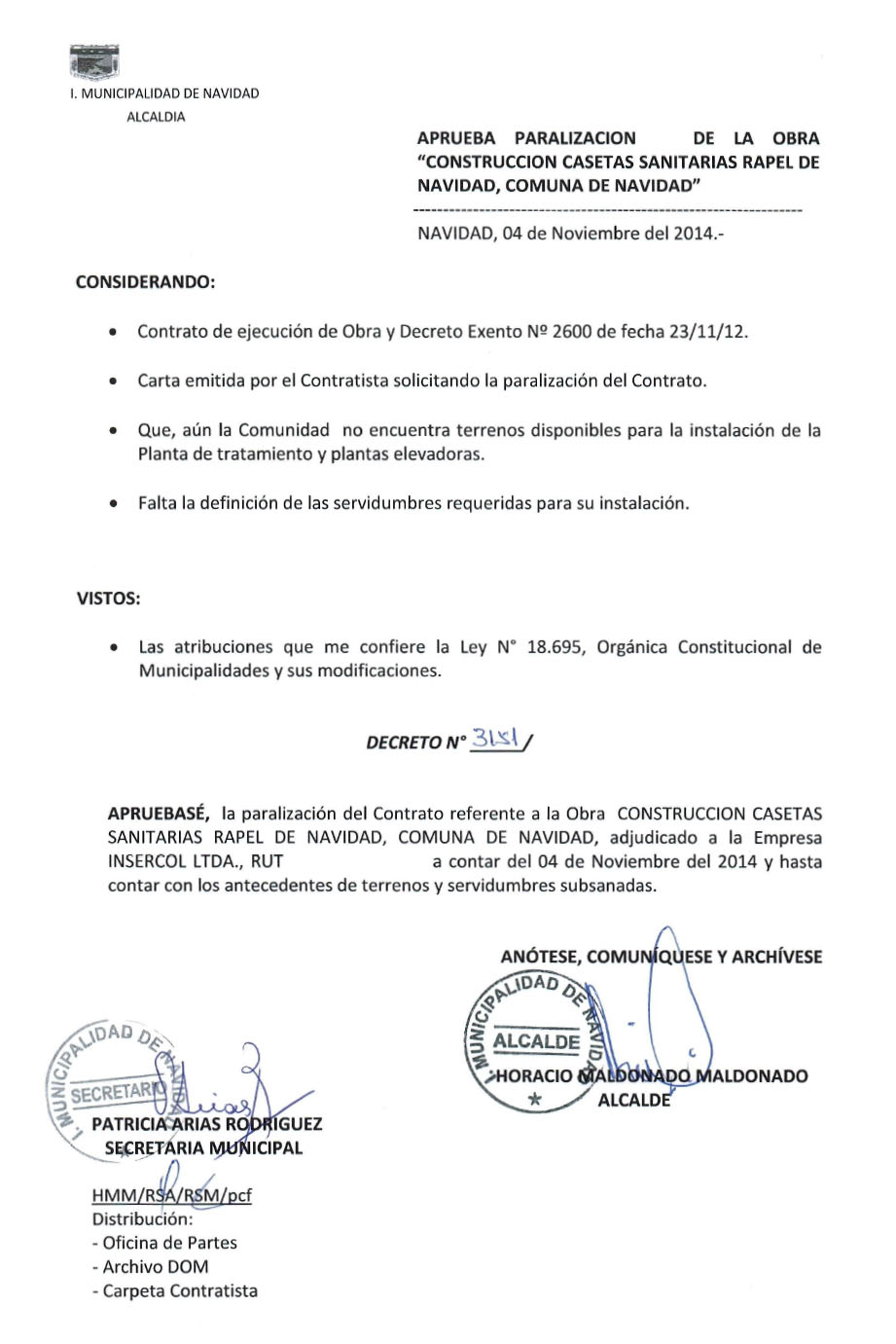 (5) 4-3-2015 Proyecto de Alcantarillado de Rapel paralizado por decreto alcaldicio/
