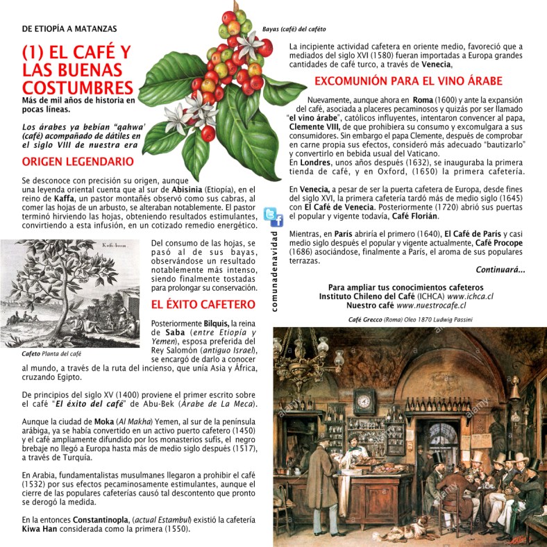 De principios del siglo XV (1400) proviene el primer escrito sobre el café “El éxito del café” de Abu-Bek (Árabe de La Meca).