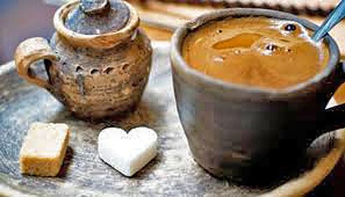 También incorporó el vaso de agua, con la finalidad de diluir los restos de café en la garganta