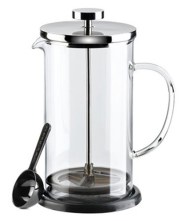 FRANCESA o de émbolo (1850) De origen italiano aunque fue asimilada por los franceses. La esencia es un pistón con filtro. Sobre el café molido se vierte agua caliente y después el pistón lo comprime pasando el agua a través del café y el filtro.