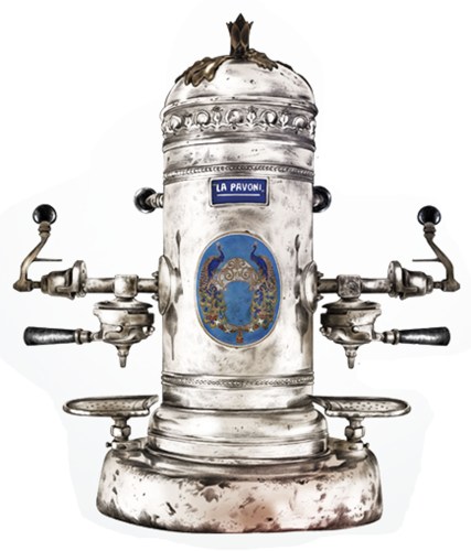 LA PAVONI Si bien tiene precedentes, la primera cafetera exprés, como las actuales, realmente capaz de servir café, unitaria y rápidamente, fue la diseñada por Luigi Bezzera (1901), de la que poco después Desiderio Pavoni adquirió la patente (1905), fundando la prestigiosa marca.