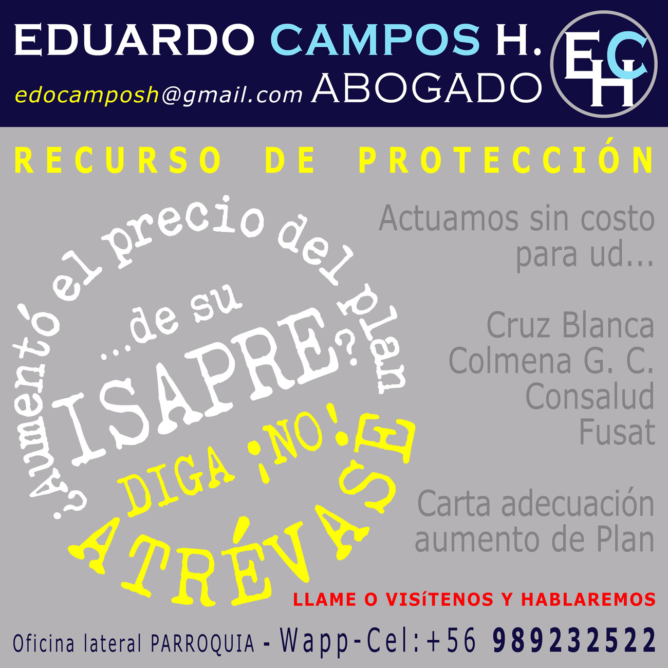 Los honorarios de abogado, independientemente del resultado, son sin costo para el cliente, siendo pagados por la Isapre al ser acogido el recurso.