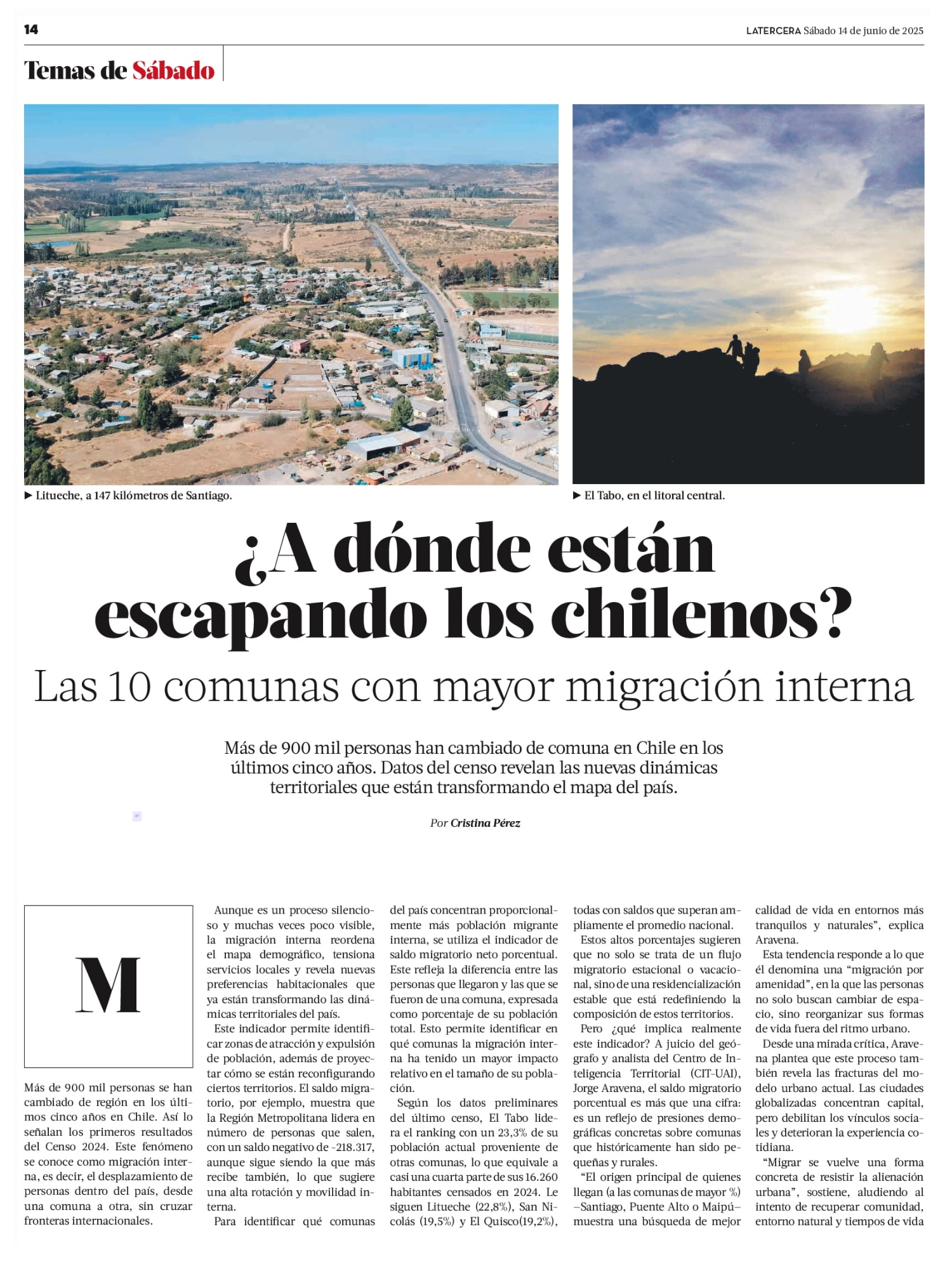 EXTRACTO de reportaje de LA TERCERA publicado este sábado (14/06/2025) firmado por Cristina Pérez.